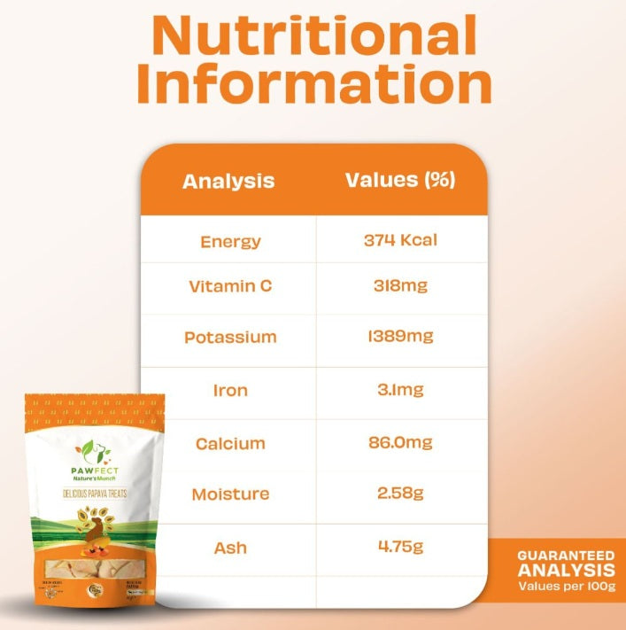 A juicy and delicious dog treat packed with disease busting vitamins (A, E, K, & C), minerals and anti-oxidants. Referred to as “superfruit”, Papaya is high in fibre and contains ‘papain’, a digestive enzyme known for aiding digestion of proteins and soothing upset stomachs.